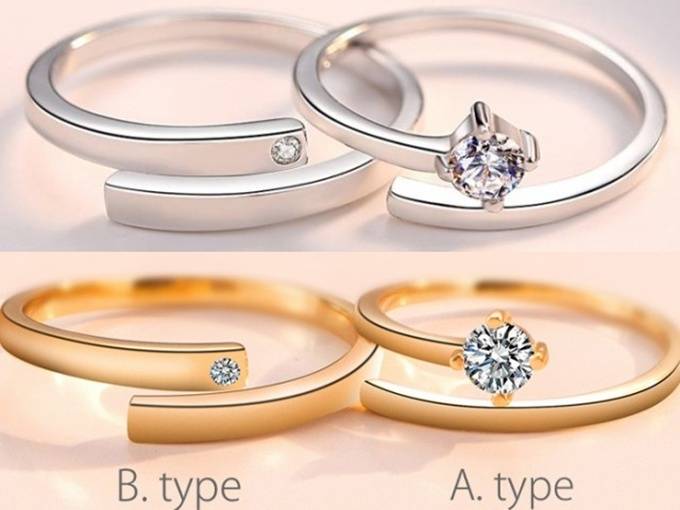 サイズの目安は、大きいジルコニアの女性らしいAタイプが約5~16号で、シンプルで男性にも人気のBタイプが約10~21号。