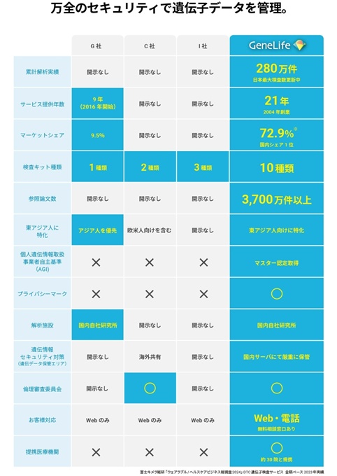 他社では遺伝情報を海外共有していたり、そもそも取扱いを開示していないところもあるため、ジーンライフが安心・安全なのが分かります。