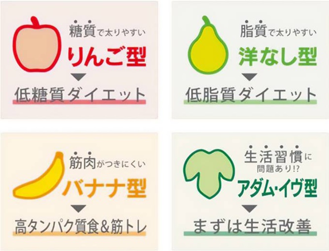 3種類に「変異がないアダム・イヴ型」が入った4つの遺伝子型ダイエットタイプに分類されます。