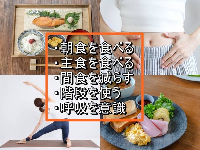 ・食べる順番を工夫する(はじめに野菜や海藻から食べて、主食の後に脂質) - 運動アドバイス: