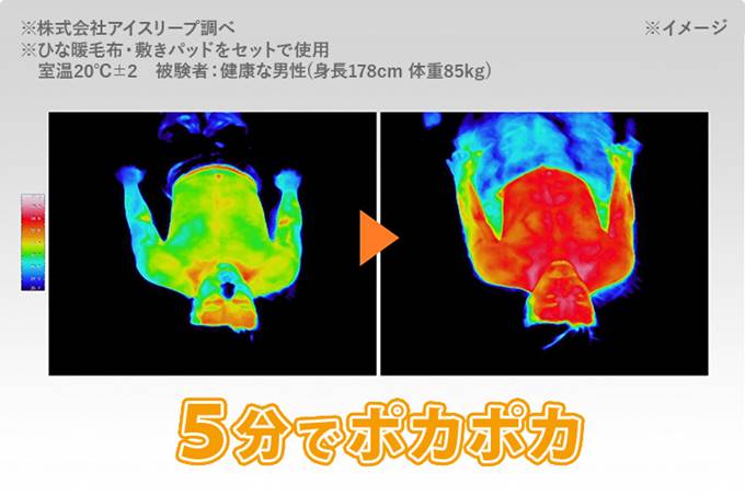 - 今までは寒くて目が覚めてましたが、ひな暖を使ったら夜中にトイレで起きる事も無く快適な眠りを満喫しております。暖かくて朝布団から出るのが辛いほど。(ダイレクトテレショップ公式 口コミ:2022年2月)