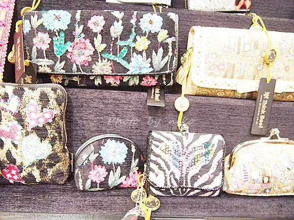様々なこだわった上質な生地に遊び心溢れるスパンコールやビーズのデザインが加わり高品質なバックや財布が生み出されているのです。