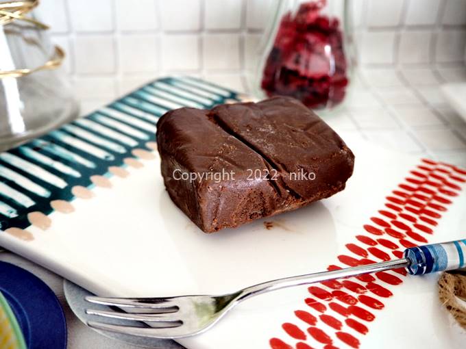 - カットしたガトーショコラを冷蔵庫で30分おく