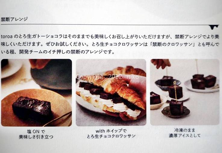 他にもクロワッサンにはさんで高級チョコクロ風に食べたり、生クリームと一緒に食べるのもおすすめ。